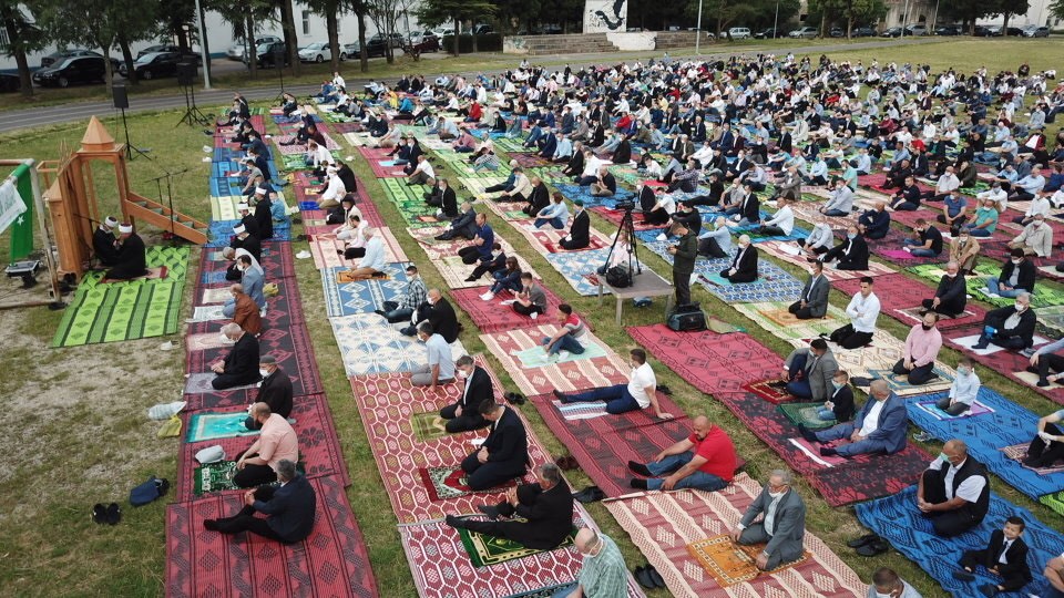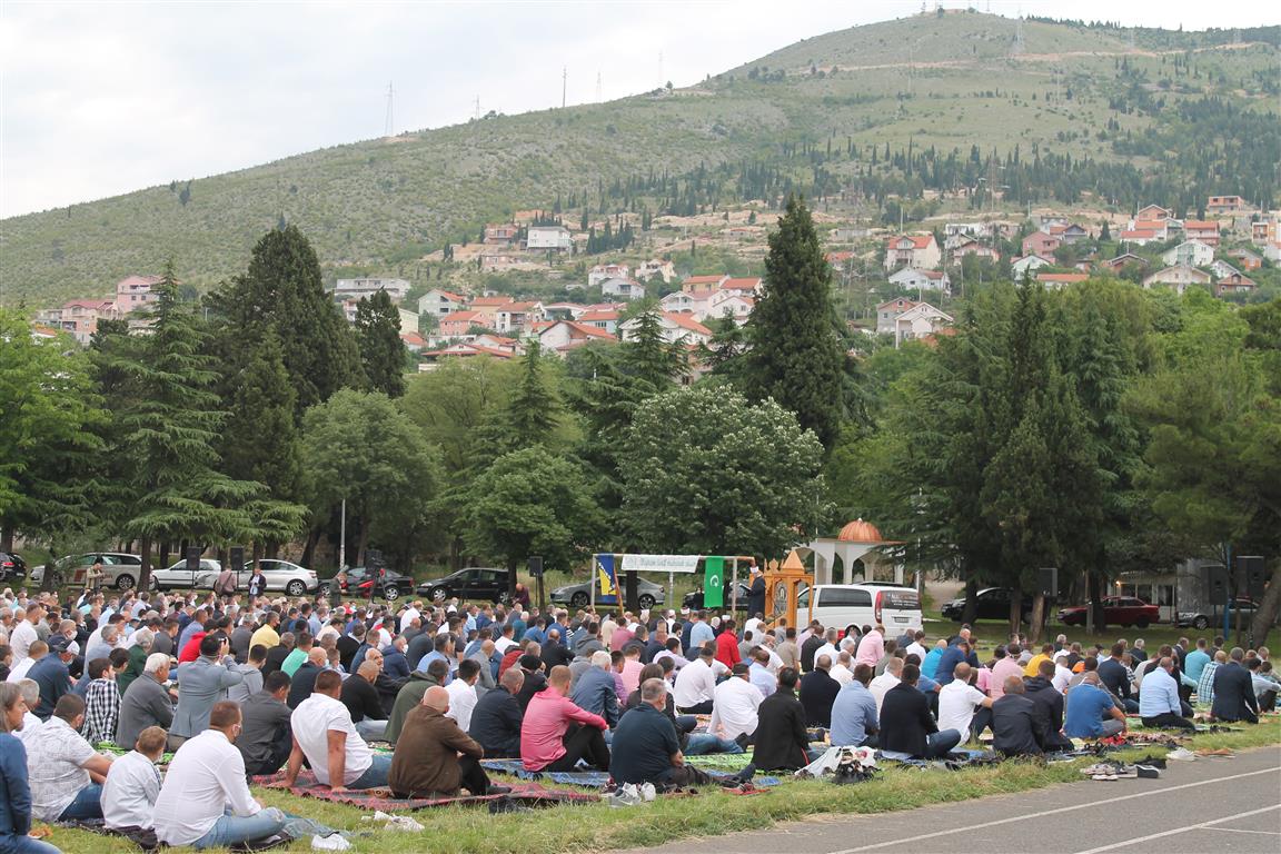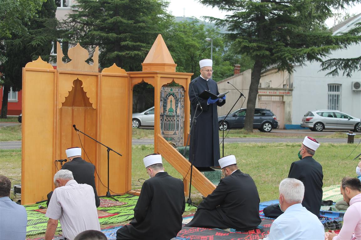 Bajram namaz, uz jasno definirane mjere zdravstvene zaštite, na području Medžlisa Islamske zajednice Mostar klanjan je u 40 džamija. Centralna manifestacija klanjanja Bajram namaza upriličena je na velikom fudbalskom stadionu Univerzitetsko-sportsko- rekreativnog centra „Midhat Hujdur Hujka“ gdje je Bajram namaz predvodio i bajramsku hutbu održao mostarski muftija mr. Salem ef. Dedović. Ovogodišnji ramazan, primijetio je muftija, protekao je u znaku utjehe i nade vjernicima nakon straha i neizvjesnosti koje su sa sobom donijele posljedice pandemije korona virusa.
