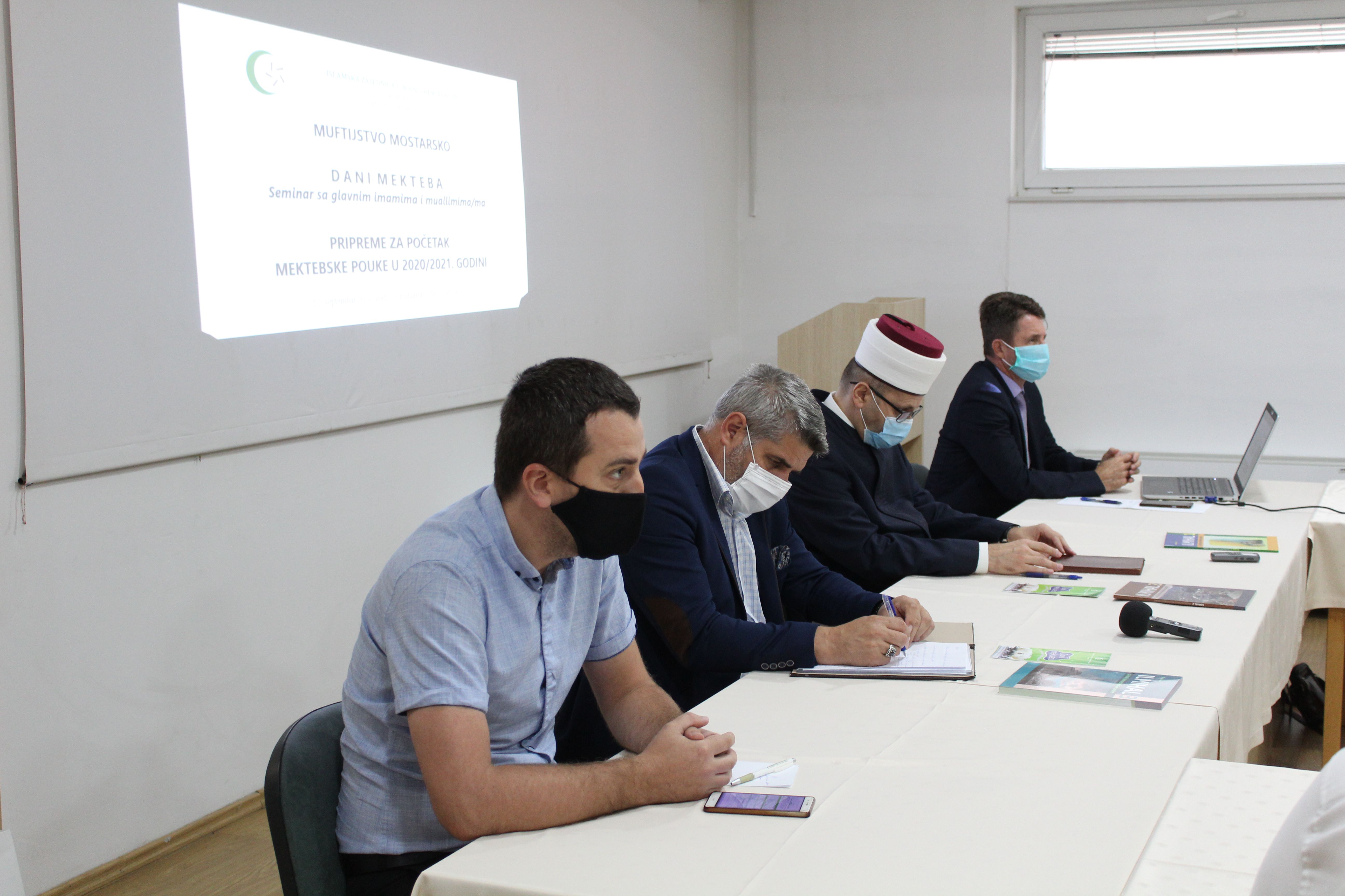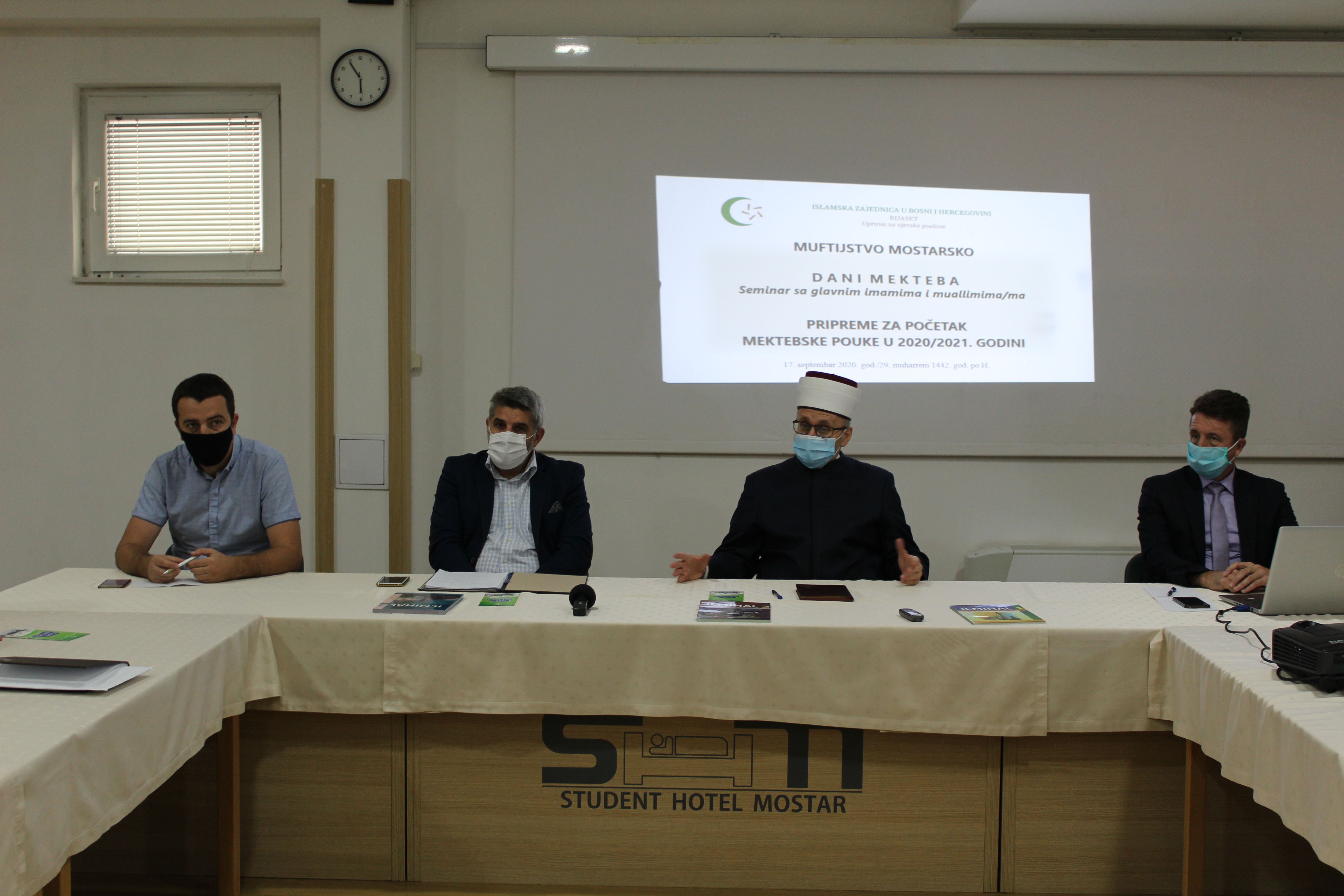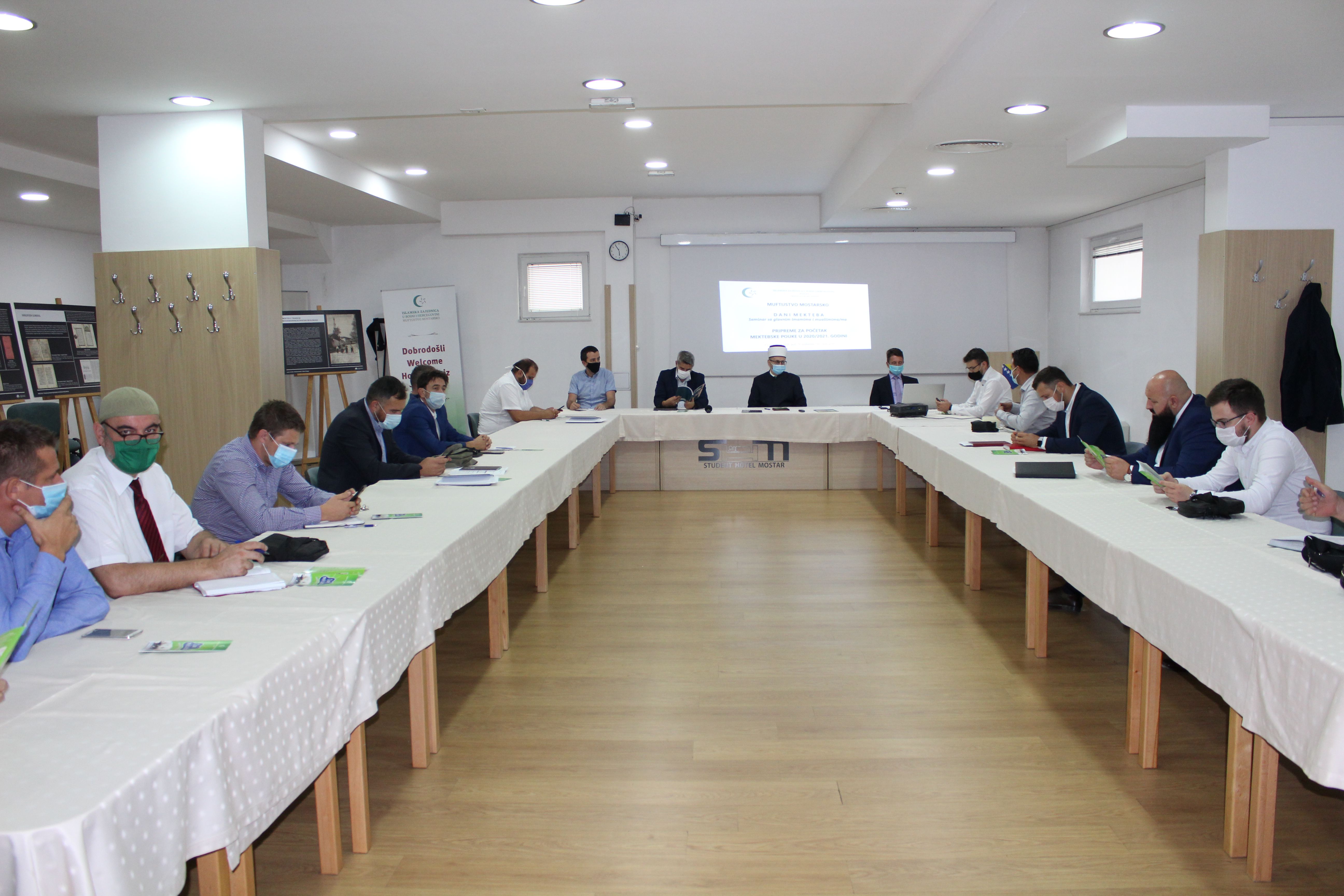 U organizaciji Uprave za vjerske poslove Rijaseta Islamske zajednice u Bosni i Hercegovini i Muftijstva mostarskog održan je seminar za glavne imame i uspješne muallime u Studentskom hotelu Mostar, a u povodu početka nove mektebske 2020/2021. godine.