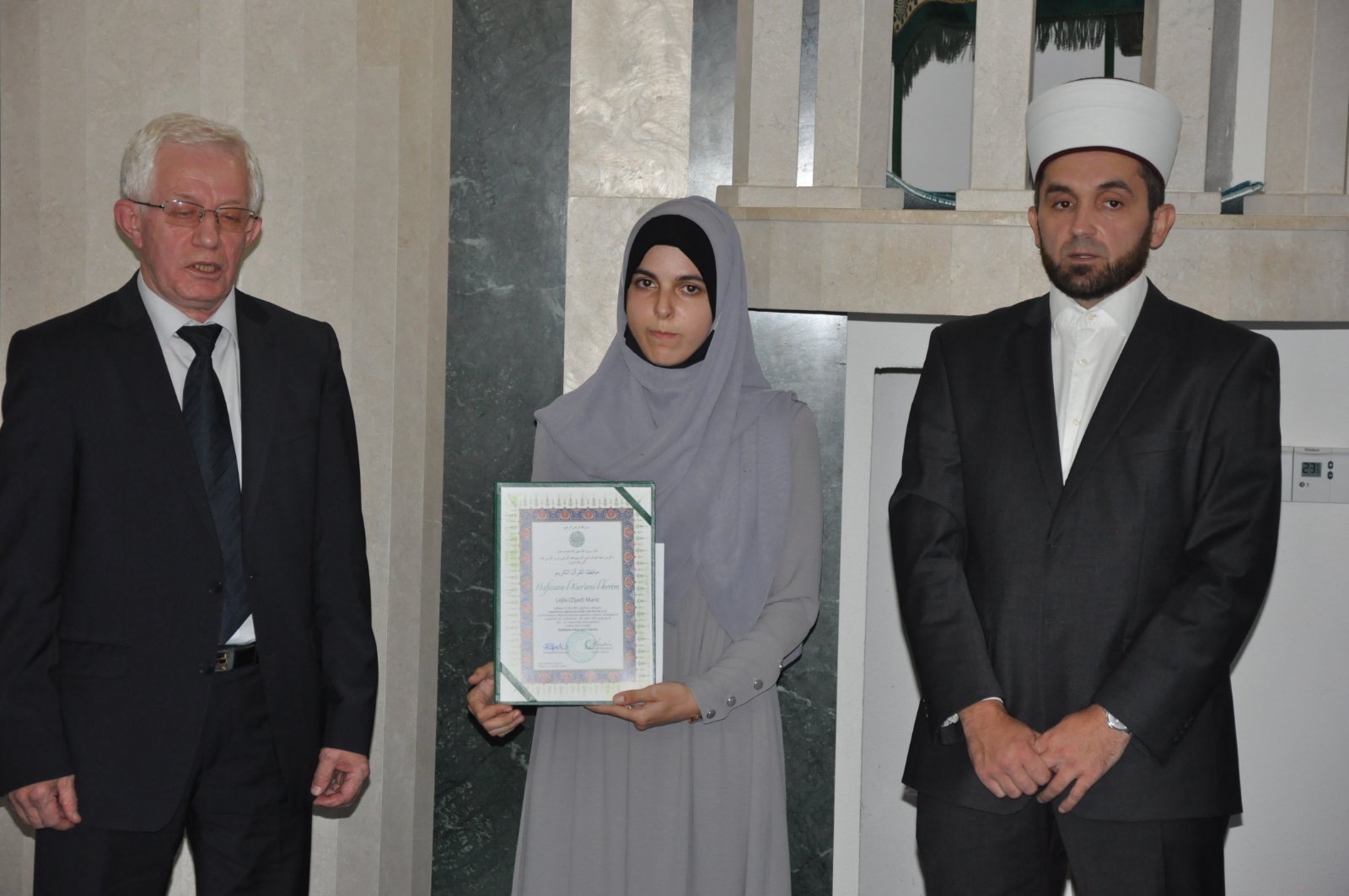 Hafisku diplomu hafizi Lejli Marić uručio je prof. dr. Ismet Bušatlić, izaslanik Reisu-l-uleme na ovoj svečanosti.