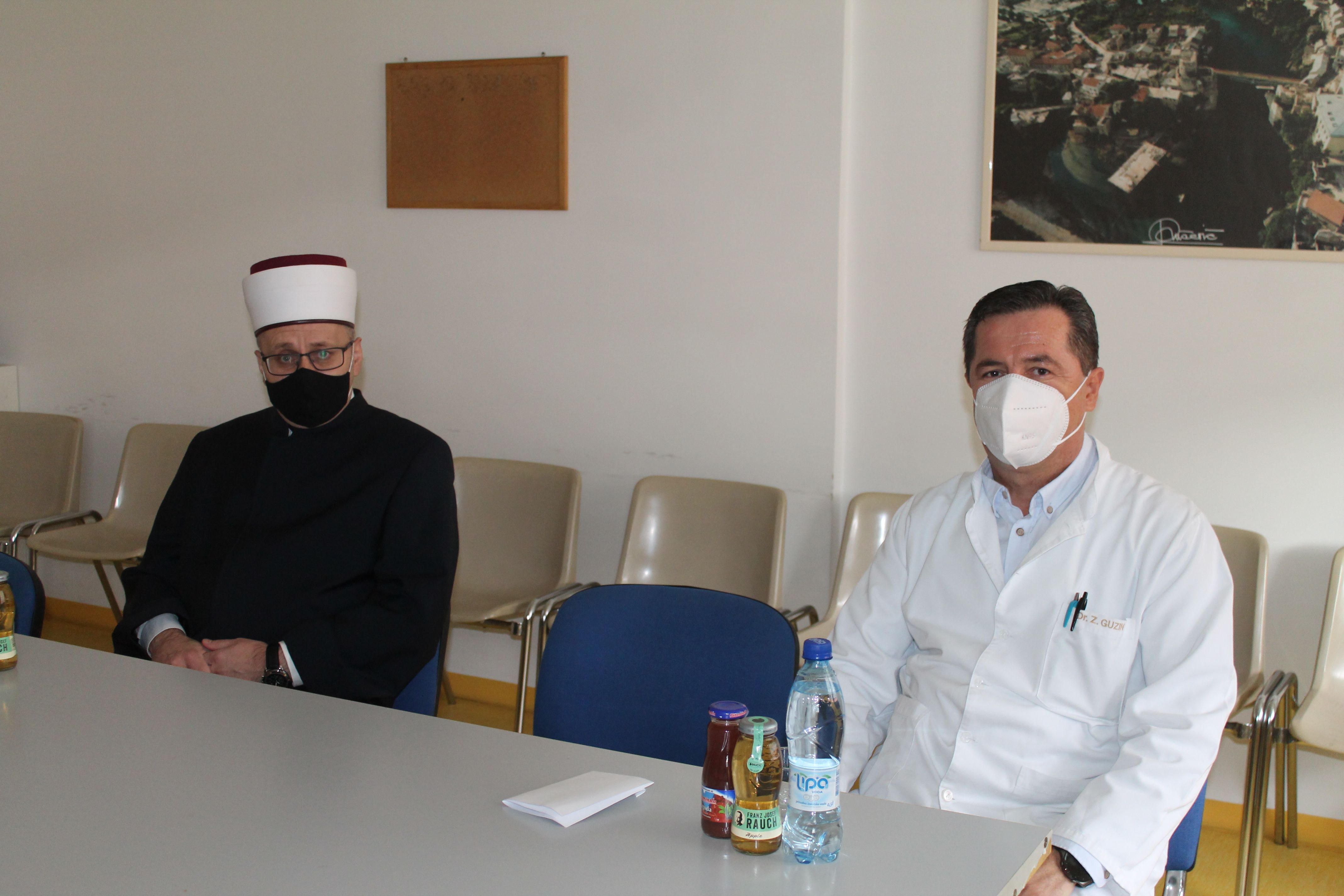 Direktor Guzin se zahvalio muftiji na stalnom interesovanju i podršci koju Islamska zajednica pruža bolnici pogotovo tokom trajanja pandemije. „Uprkos vrlo teškoj epidemiološkoj situaciji u Kantonu i činjenici da je znatan broj naših uposlenika bio izložen infekciji Covid 19, velikim trudom i zalaganjem svih zaposlenih, uz usku saradnju sa svim drugim zdravstvenim ustanovama u našem kantonu, za sada uspijevamo odgovoriti zadatku. Drago nam je da imamo odličnu saradnju sa Mostarskim muftijstvom, koje je od početka pandemije organiziralo nekoliko akcija prikupljanja pomoći u lijekovima i zaštitnoj opremi“, rekao je Guzin.