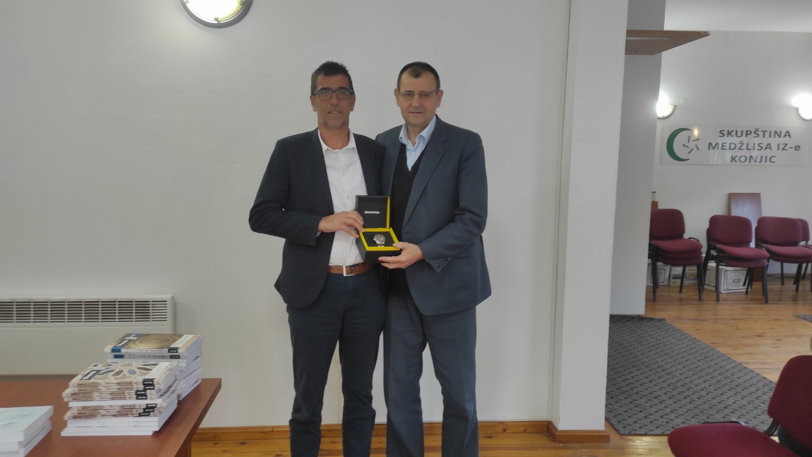 Glavni imam Refik-ef. Delić ispred Medžlisa IZ Konjic i Ćamil-ef. Pindžo ispred Odbora “Ilmije” Konjic uručili su Mumin efendiji prigodne poklone uz dovu da mu Allah Uzvišeni podari da u zadravlju i rahatluku živi svoje penzionerske godine.