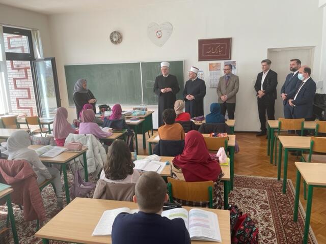Po obilasku mekteba, delegacija je posjetila Islamsku gimnaziju dr. Ahmeda Smajlovića. Direktor Gimnazije Mevludi ef. Arslani predstavio je rad škole kao i projekt kojim bi se kvaliteta sadržaja škole podigla na nivo posljednjih dostignuća u polju obrazovanja, a s direktorom Karađoz-begove medrese hfz. Aidom Tulekom razgovarao je i o najboljim iskustvima te izazovima s kojima se susreću u odgojno-obrazovnom procesu.