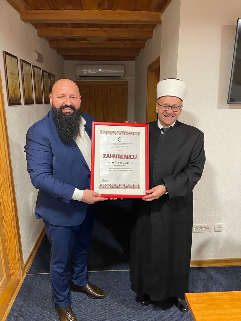 Ispred Okružnog odbora Udruženja Ilmijje Mostar, uručene su zahvalnice muftiji mostarskom mr. Salem-ef. Dedoviću, te predsjednicima osnovnih odbora Ilmijje u prošlom mandatu (2018.-2022.), Mustafa-ef. Jelovacu (Mostar), Sadet-ef. Bilaliću (Gacko), Samir-ef. Đonlagiću (Livno) i Ibrica-ef. Kurtoviću (Čapljina) koje je dodjelio predsjednik Udruženja Nihad-ef. Ahmetović.