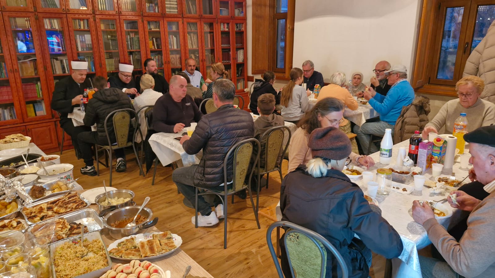 Naime, trebinjske porodice sa pripremljenim iftarima kod kuće dolaze u Medžlis kako bi svi zajedno podijelili radost ramazanske sofre. Iftaru su, pored glavnog imama hadži hafiza Sadik-ef. Fazlagića i predsjednika Izvršnog odbora Miralema Hadžimahovića, prisustvovali i raniji predsjednik prim. dr. Harun Bilalović, Nedžad i Mirsad Baraković, te ramazanski imam Hamza Džafić, učenik četvrtog razreda Karađoz-begove medrese.