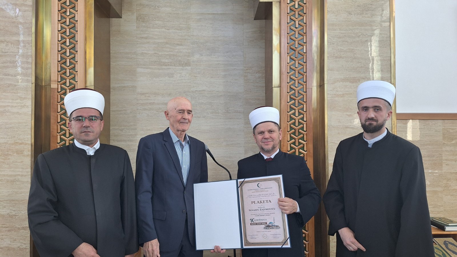 Po obraćanju glavnog imama uslijedila je dodjela Plakete hafizu dr. Senaidu Zaimoviću, koji je bio i hatib džuma-namaza u Gradskoj džamiji.